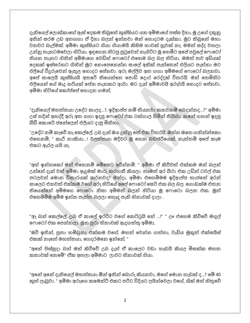 This installment blends seamlessly with the modern reading style of Wela Katha 2025, offering an engaging and memorable Sinhala story experience.