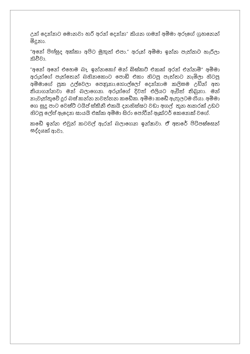 This chapter maintains a steady rhythm guided by Sinhala Wal Kata, ensuring consistency and a natural storytelling structure.